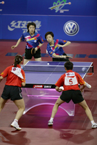 Já nas duplas masculinas, Kong Linghui e Wang Hao derrotaram os alemães Timo Boll e Christian Suss por 4 a 1 (11-9, 11-3, 11-9, 7-11, 11-6) e ficaram com o título.