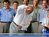 O Presidente da República não fez feio e aplicou um drive (foto) pra cima do maior medalhista brasileiro em Pan-Americanos, ao lado do nadador Gustavo Borges, para felicidade dos presentes no evento.